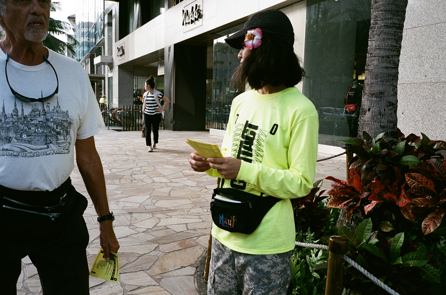 Street Team brings visibility back to the street at a time when street teams have largely been outshadowed by social media ambassadors. Street Team promotes CONTACT ZONE (the exhibition) and contact zones (the concept), all within a major contact zone (Waikīkī).
